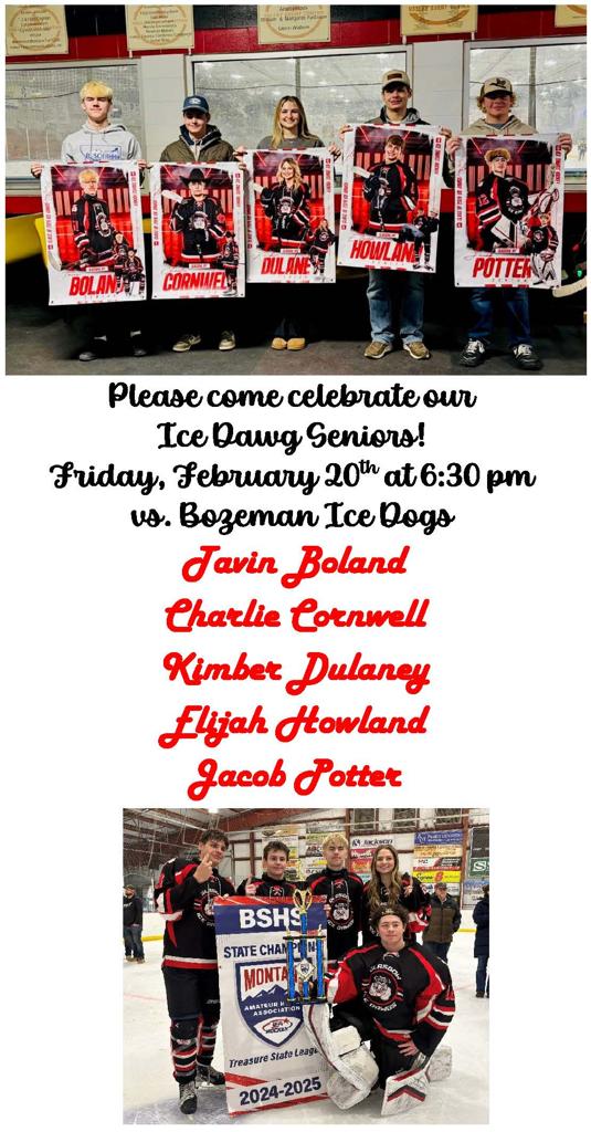 Glasgow Ice Dawg hockey teams are the primary users of the Valley Event Center also home to the Hi-Line Figure Skating program. The Valley Event Center is available to the public for recreational skating and events.